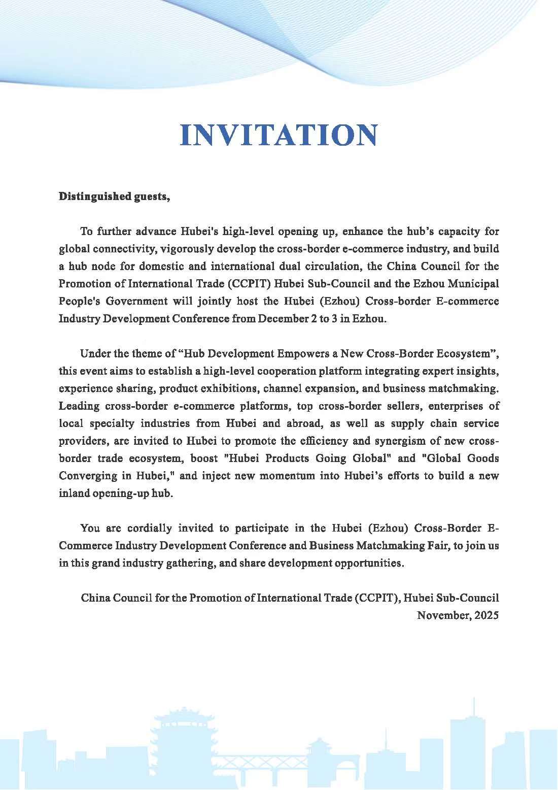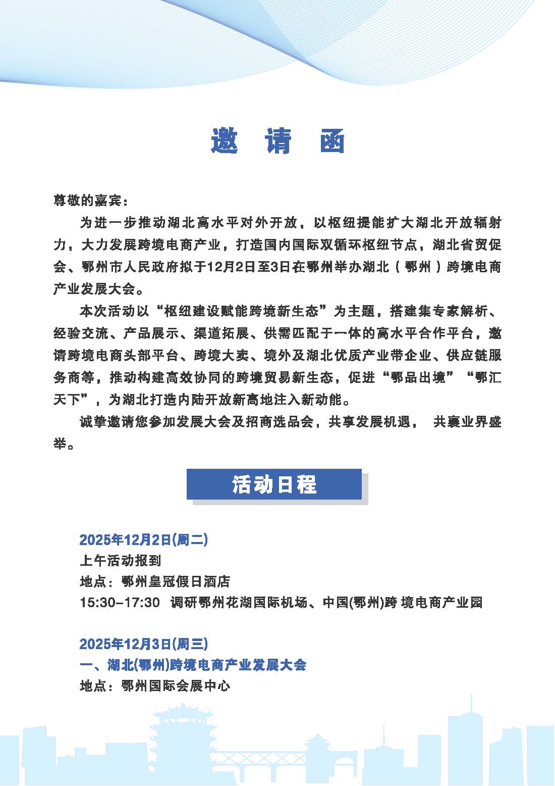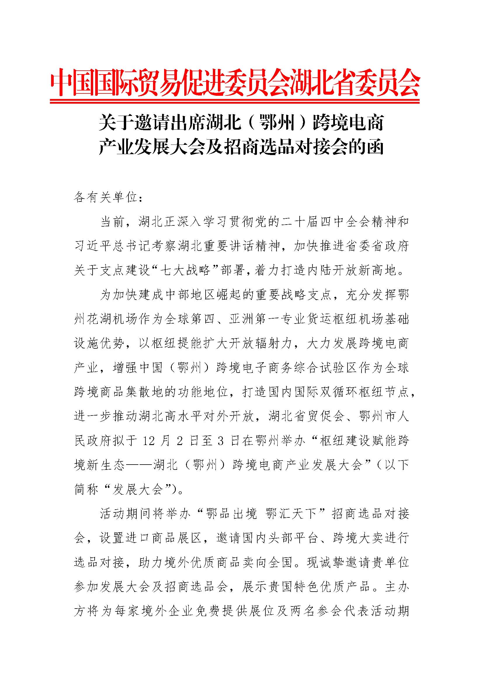关于邀请出席湖北(鄂州)跨境电商产业发展大会及招商选品对接会的函