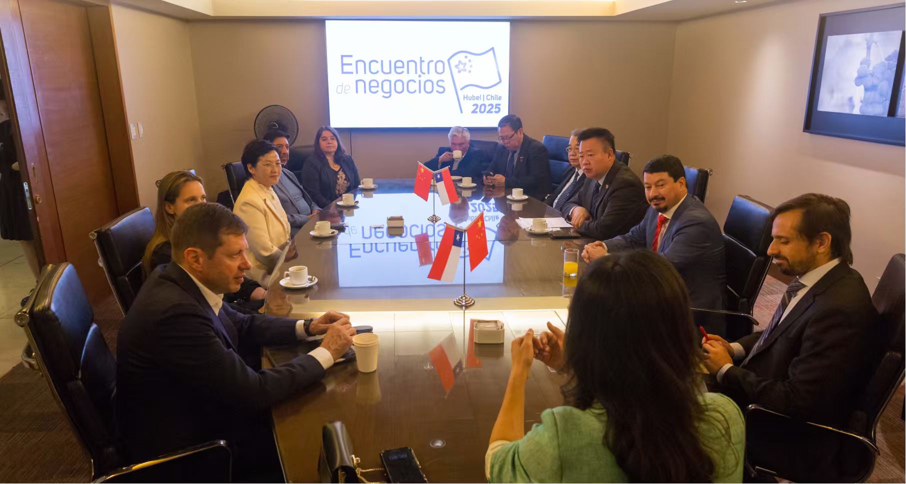 在圣地亚哥期间,代表团还与智利投资促进局、智利出口促进总局、安托法加斯塔工业协会、智利可再生能源和储能协会、智利氢能协会、智利包装行业协会、智利水果协会等商协会及贸促机构开展座谈。智方向代表团介绍智利经济发展新情况和产业发展新趋势,并推介了各自在智利举办的专业展会和大型活动,邀请更多湖北企业家到访智利,利用活动平台与包括智利在内的广大拉美企业对接商机。双方围绕进一步推动双边贸易、促进双向投资、加强商协会间常态化交流、构建机制性合作平台等议题交换了意见,达成了深化务实合作、实现互利共赢的共识。