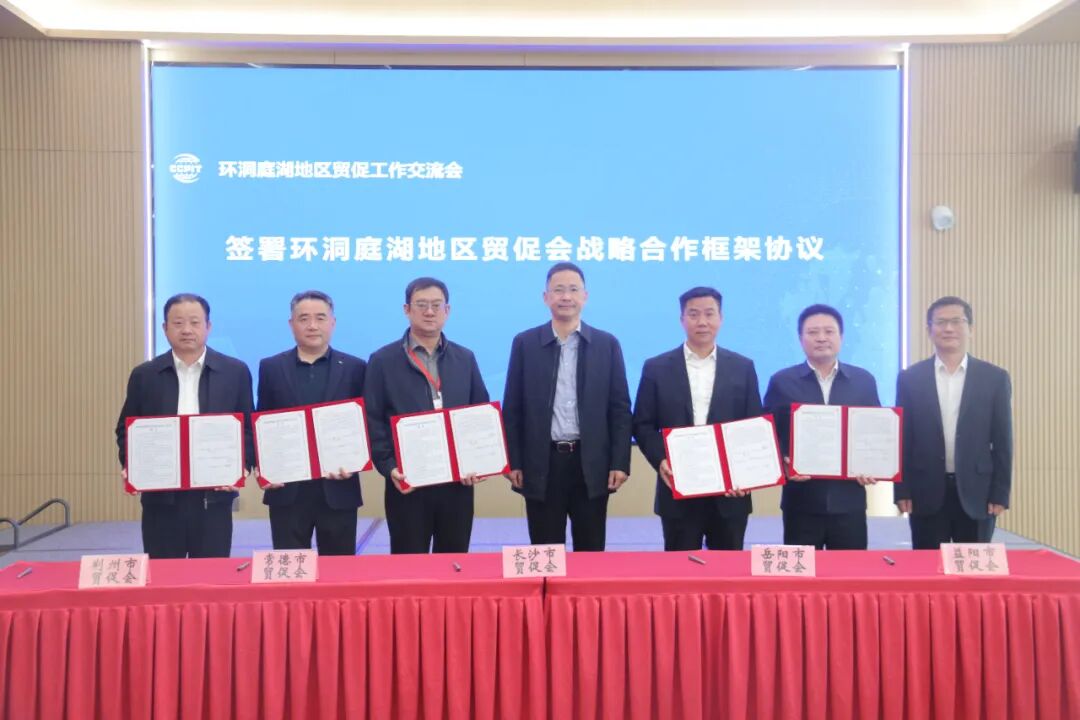 展会期间,举办了环洞庭湖地区贸促工作交流会,市商务局党组书记、局长,市贸促会会长汤光华作交流发言。荆州市与岳阳市、长沙市、常德市、益阳市贸促会共同签署了《环洞庭湖地区贸促会战略合作框架协议》,标志着区域经贸合作正式迈入机制化、常态化的新阶段,为荆州农产品及更广领域的产品流通、资源共享与市场互联提供了强力的平台支撑,为区域协同发展注入了新动能。